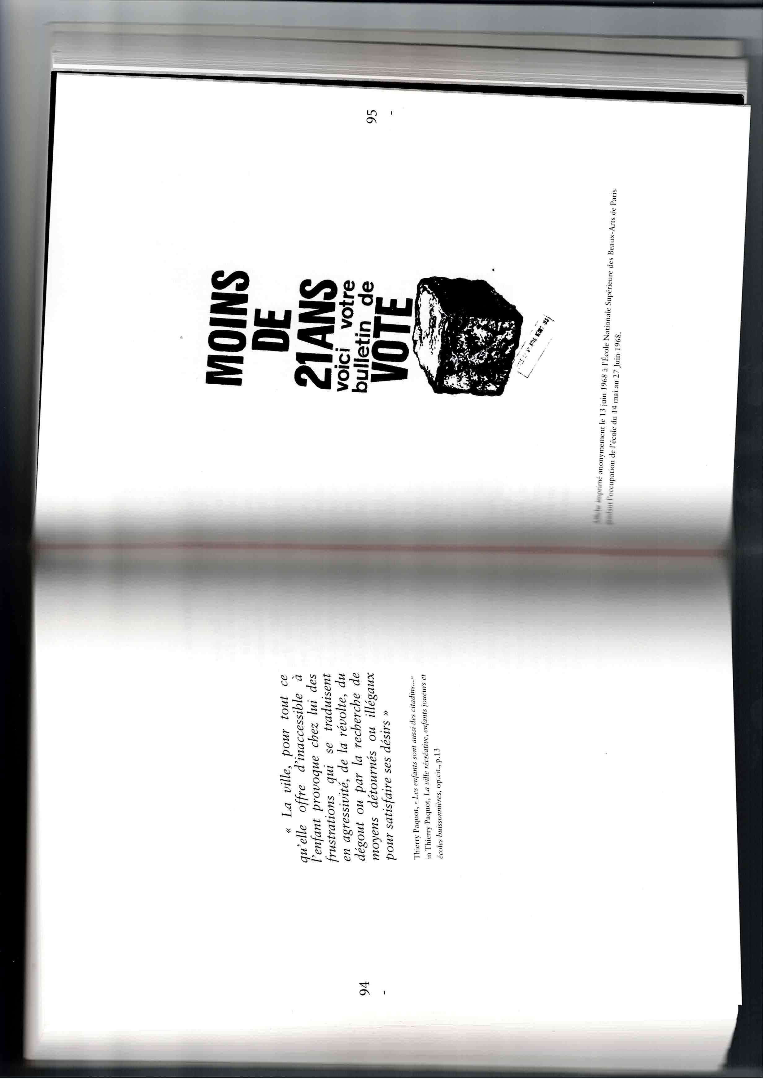 Si l’aire de jeu urbaine standard est un enclos permettant de tenir les corps indisciplinés des enfants à distance du trafic routier pour ne pas compromettre les flux, la zone de chantier quant à elle, avec ses outils, sa terre meuble, ses câbles, ses bouts de bois, ses éléments bricolés, pourrait bien être, à l’inverse une sorte d’aire de jeu en ville.
