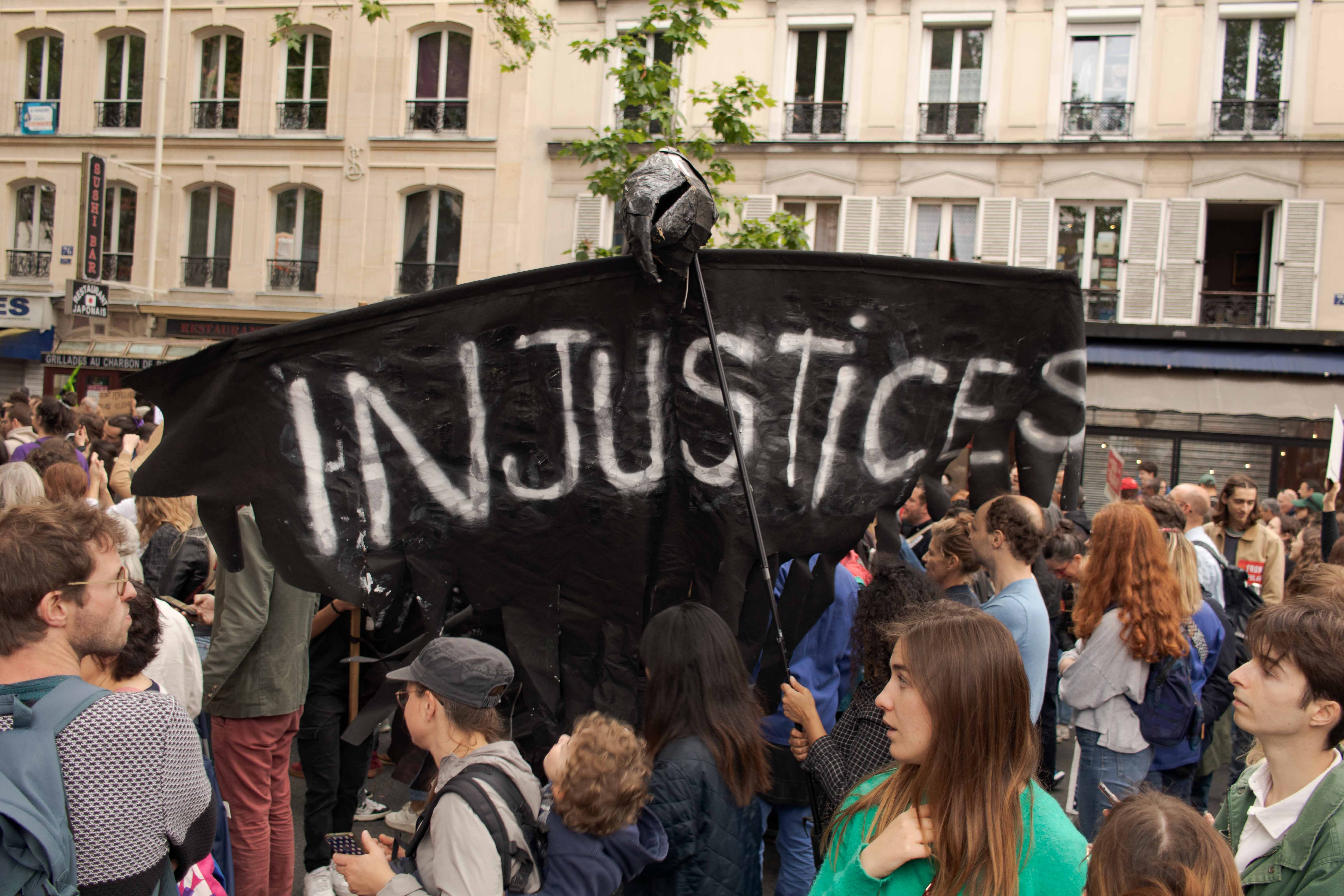 Le 15 juin 2024, j’ai mis dans mon sac photo, des masques jetables, des gouttes de collyre et des lunettes de piscine avant de me rendre à la manifestation de soutien au Nouveau Front populaire . En filant vers le cortège, je pensais vivre l’acte deux de la marche historique des gilets jaunes à Paris; jour mémorable où j’avais finis nassé avec un bout de la France, dans le centre, les yeux rougis par les nuages de lacrymogène. Après une échappée par un trou de filet, j’avais slalomé entre des poubelles entassées depuis des jours et des barrages en feu dans les beaux quartiers de la ville. Une énergie violente et cathartique chargeait l’air, ça sentait le brûlé, la fin d’époque.