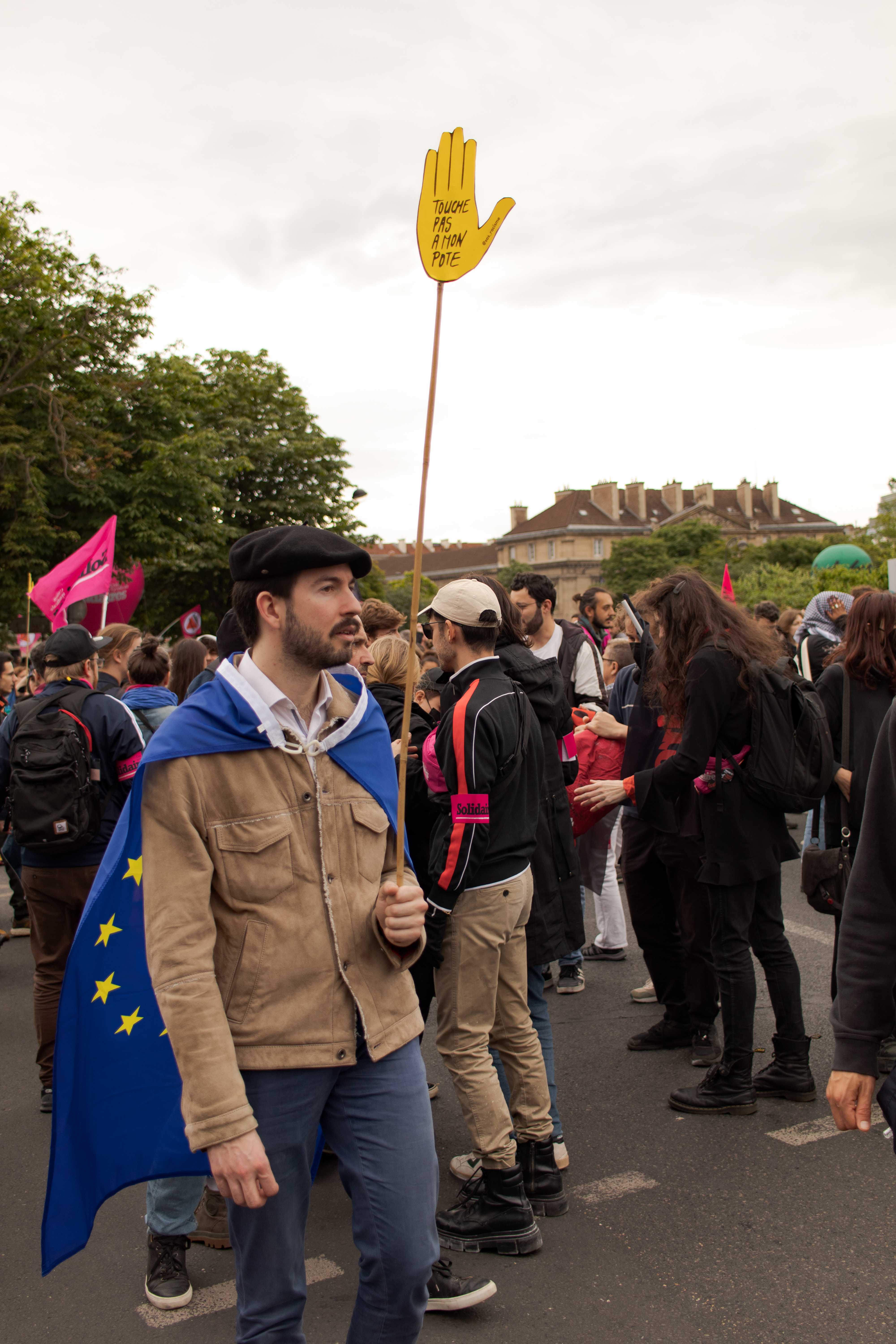 Comme elle suivait sans trop se mélanger, les chars d’organisations aux prérogatives diverses, la cohorte réunissait des Français. e. s aux trajectoires et aux histoires bien différentes. Ainsi vouloir brosser un portrait unifié et englobant de cette masse de marcheurs temporairement solidaires m’apparut in fine comme un effort destiné à échouer. Si l’échantillon d’un peuple de gauche était présenté ce jour-là, il se montrait volatile, composite, gazeux.