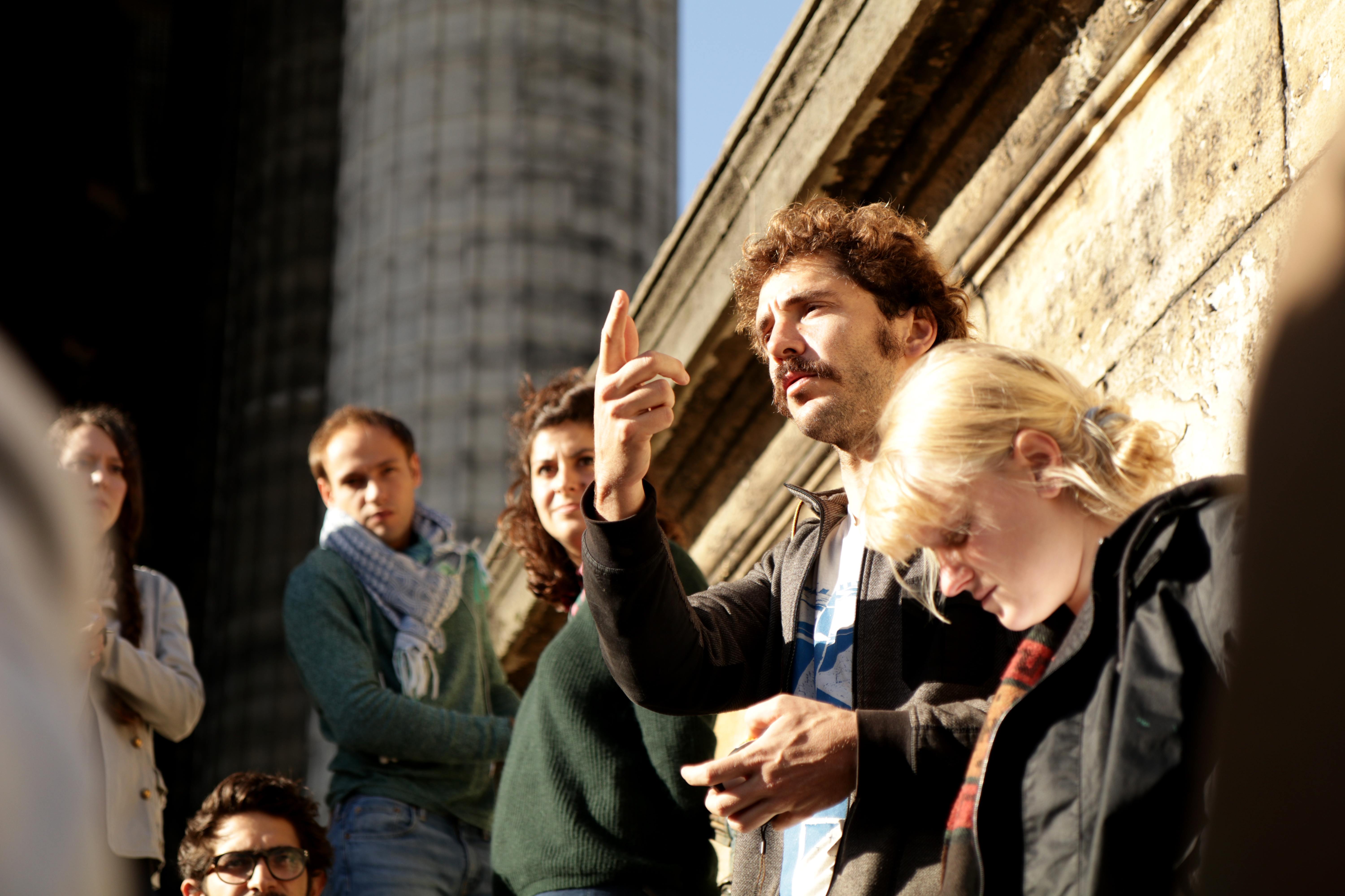 Les membres du groupement partent des colonnes du monument pour dessiner une trame qu’ils reportent sur la place s’étalant autour de ce dernier.